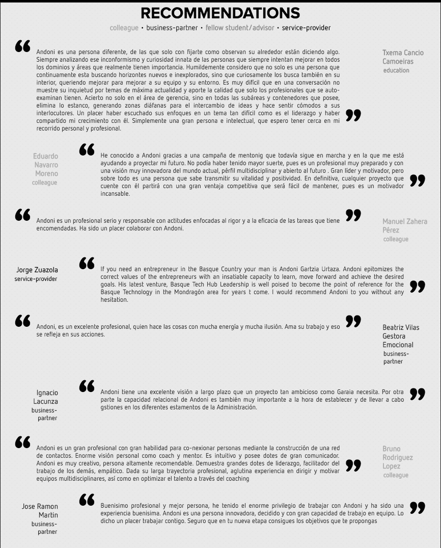 Despues de un training en Alemania con Jorge Zuazola como Fundador de German Leadership y de un buen alto número de Internet Ideas Incubators, he fundado Basque Tech Hub Leadership que significa Liderazgo del HUB de tecnología Vasca en Mondragon