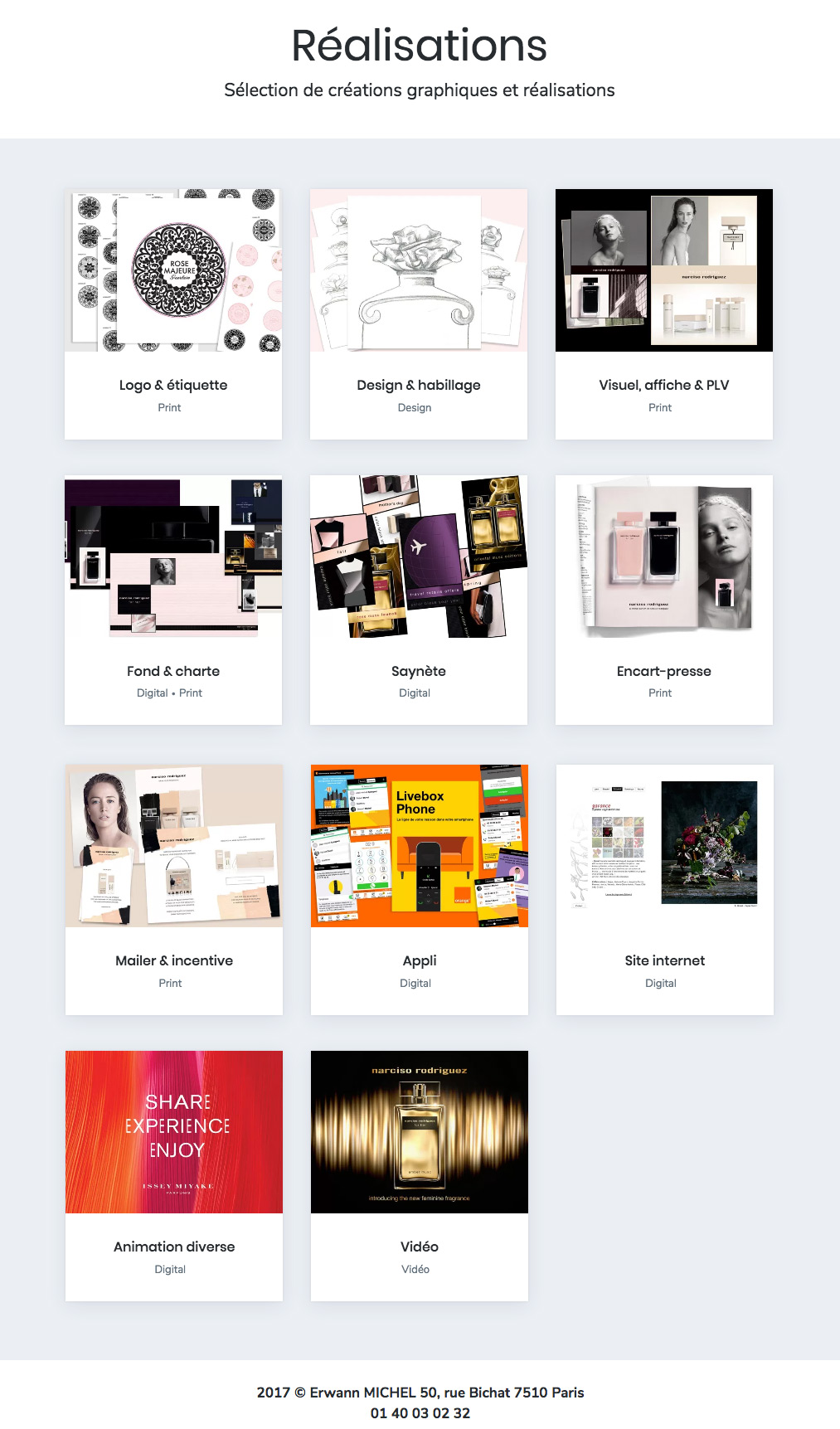 Conçois et réalise des identités visuelles complètes : de l’image fixe (logo, visuel institutionnel, catalogue, affiche, étiquette…) aux films pour points de ventes (avec prise de vue, 3D ou animation vectorielle), du site internet à la newsletter, du brief à la livraison.