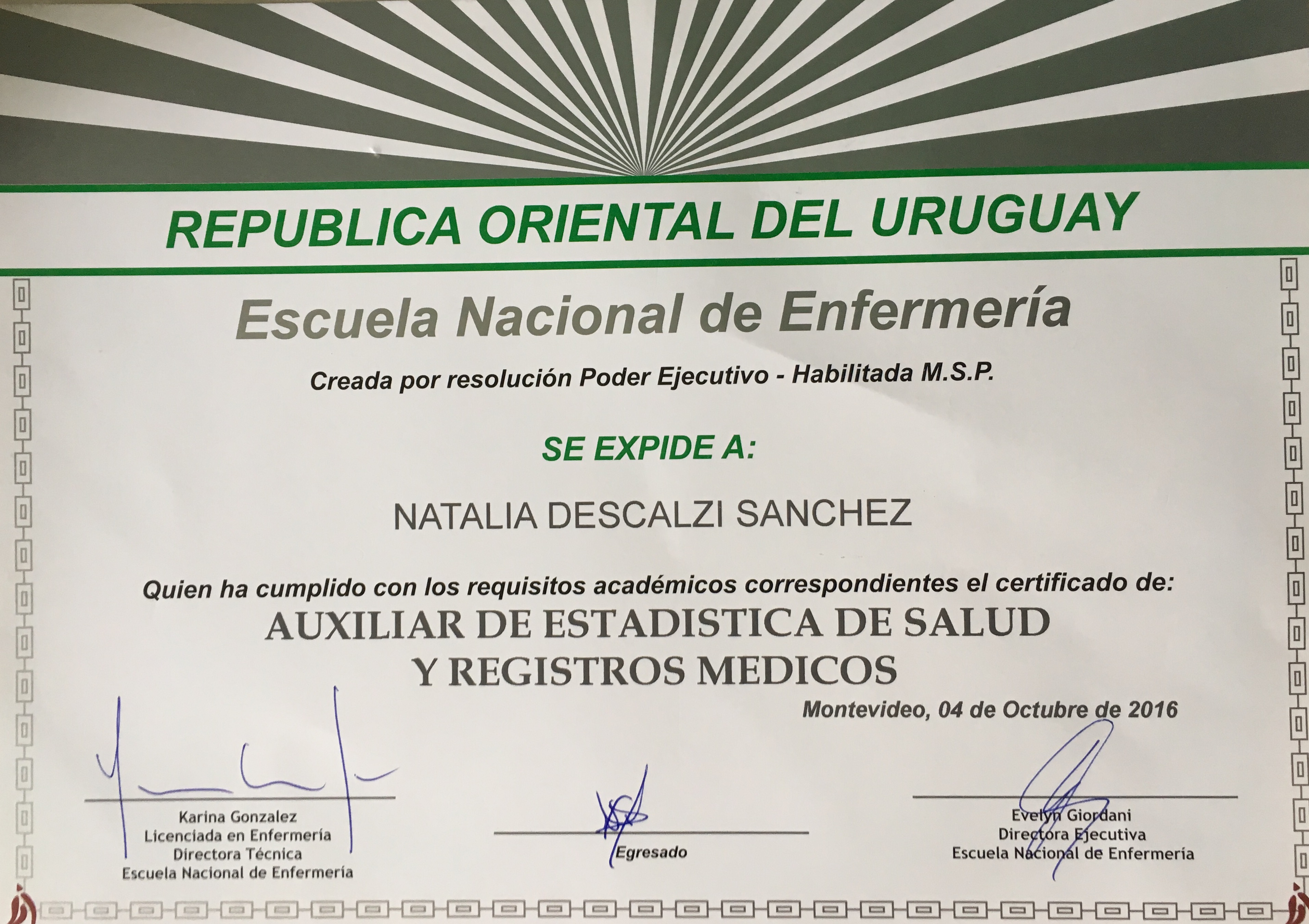 Finalizado con Certificación, título de Egreso registrado en el MSP y MEC.