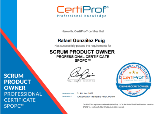 Certificación CertiProf como Product Owner bajo el esquema de trabajo SCRUM